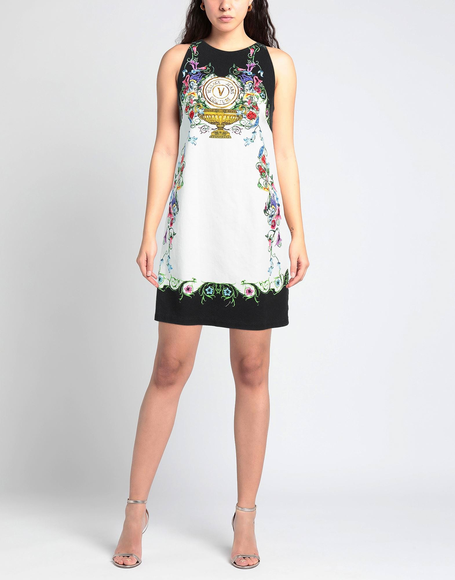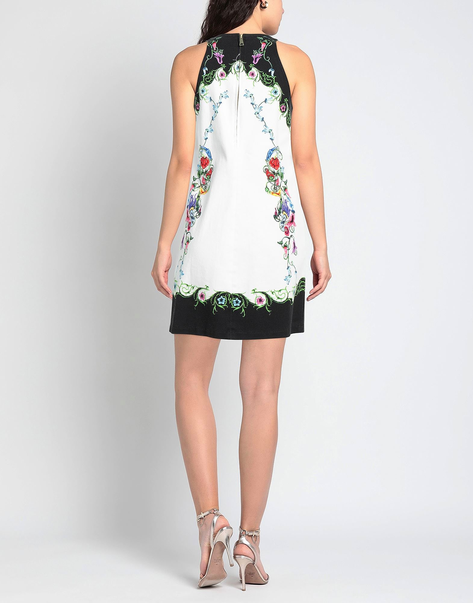 Gabardine, brand logo, signature print, crewneck, sleeveless, unlined, zipper fastening, no pockets, stretch, flared dress