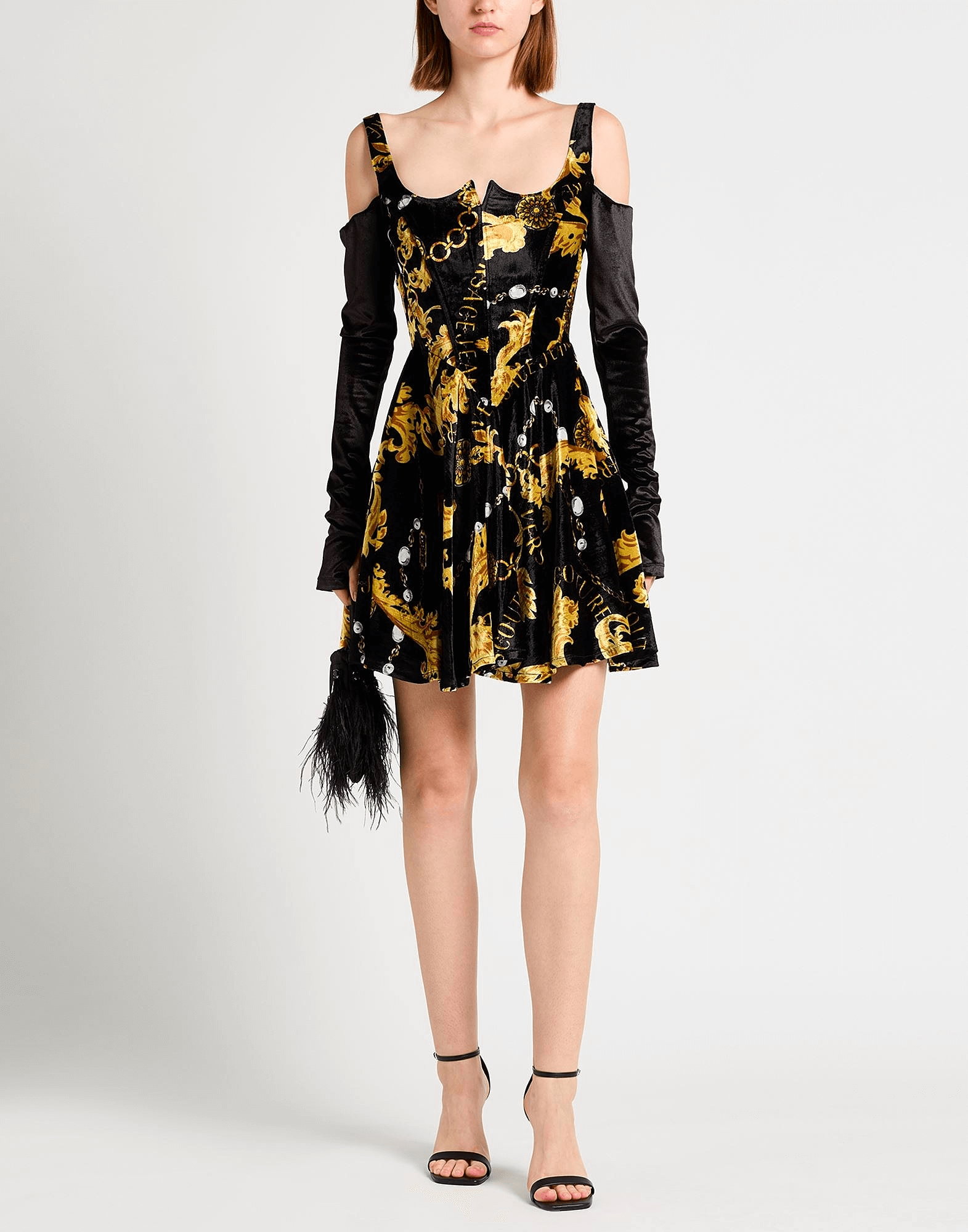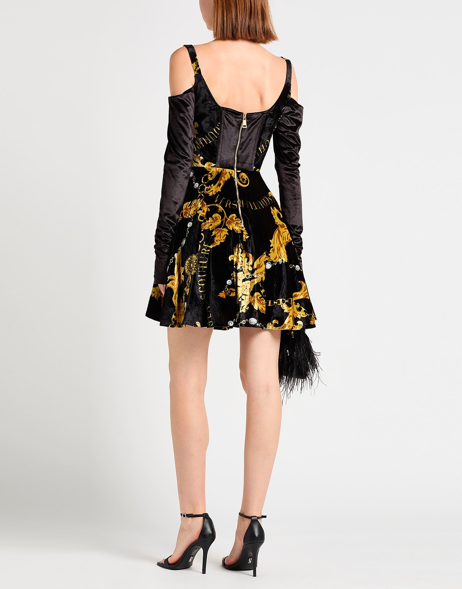 Velvet, no appliqués, signature print, scoop neckline, long sleeves, thumbhole cuffs, internal boning, zipper fastening, without pockets, stretch, hand wash or dry clean, do not bleach, do not tumble dry, circle dress