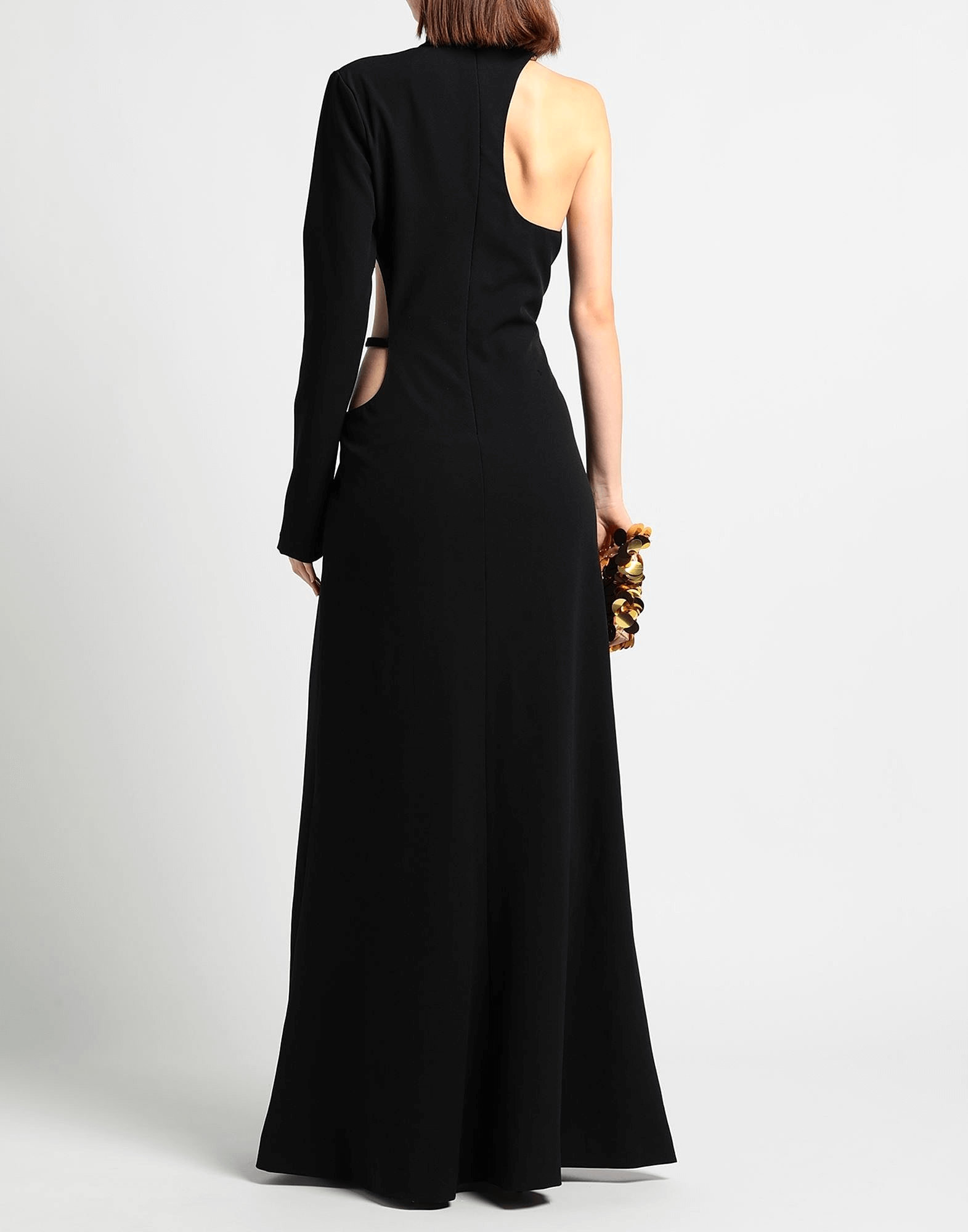 Gown, crepe, stretchy fabric, solid color, no appliqués, one-shoulder, fully lined, zipper fastening, without pockets, side slit, hand wash or dry clean, do not bleach, do not tumble dry, amp up the glamour with chic designer party outfits for your next event or fun night out